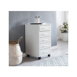 Kaasaegse ja ajatu disainiga sahtliboks. Boks on valmistatud melamiinkattega mööbliplaadist. Viimistlus: sonoma tamm. 5 mahukat metallist siinidel sahtlit asjade paigutamiseks. 4 ratast, et boksi oleks võimalikult lihtne mööda tuba liigutada.