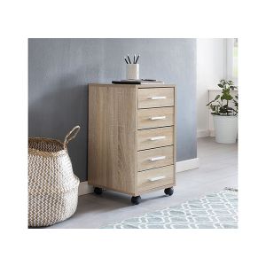 Kaasaegse ja ajatu disainiga sahtliboks. Boks on valmistatud melamiinkattega mööbliplaadist. Viimistlus: valge. 5 mahukat metallist siinidel sahtlit asjade paigutamiseks. 4 ratast, et boksi oleks võimalikult lihtne mööda tuba liigutada.